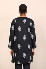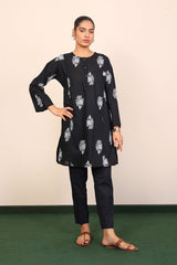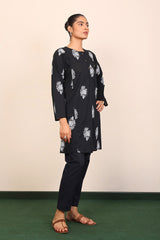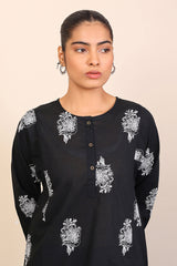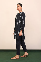 Panelled medium length kurta with embroidery motifs and buttons on placket.>br>