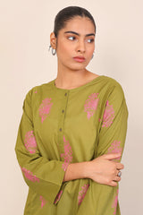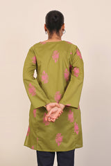 Panelled medium length kurta with embroidery motifs and buttons on placket.>br>
