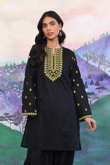 Panelled Medium length embroidered kurta with speckled motifs on sleeves.