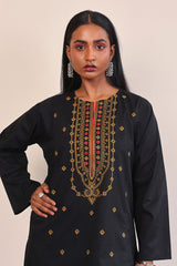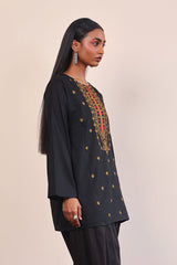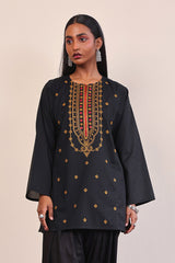 Short length, panelled kurti with embroidery details on neckline and all over the front.Sizes 8, 10 & 12 are 31" in length and 14 & 16 are 33" in length.