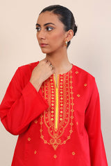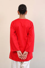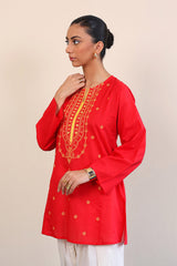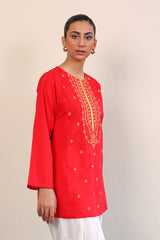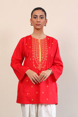 Short length, panelled kurti with embroidery details on neckline and all over the front.Sizes 8, 10 & 12 are 31" in length and 14 & 16 are 33" in length.