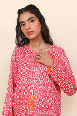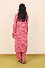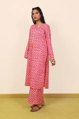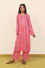 A long printed straight shirt with long tassels with round neckline and full sleeves. Paired with matching culottes.