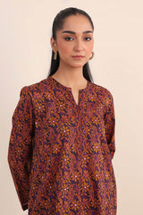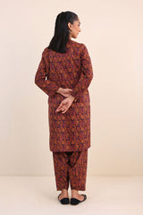 Printed shadow work inspired shirt paired with classic fit printed shalwar.