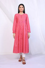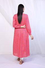 A long tiered dress with buttons on plackets, and cuffed sleeves.-Model is wearing size 8 and height is 5' 7''