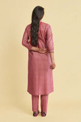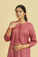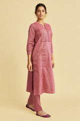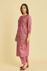 Printed A-line kurta with button details on placket, paired with straight fit pants.