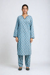 Printed loose fit kurta with dori embroidery details on neckline and sleeves, paired with classic fit shalwar.