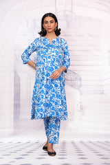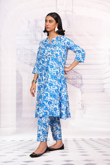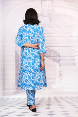Printed flared floral tunic with gather details and hand stitch details. Paired with straight fit pants.