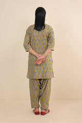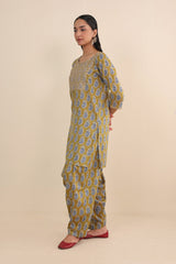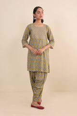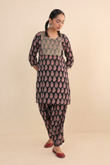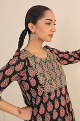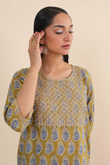 Printed Kurta with dori embroidery details on neckline, paired with classic fit printed shalwar.