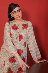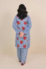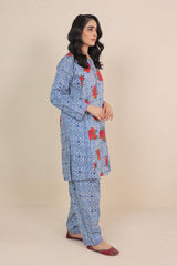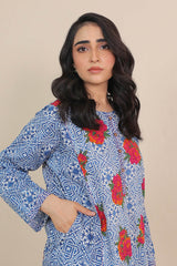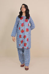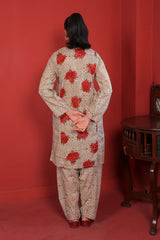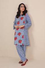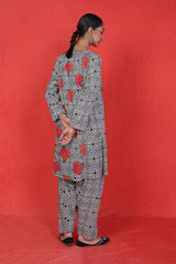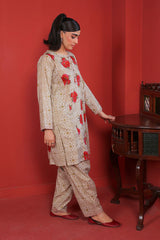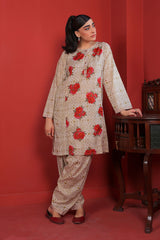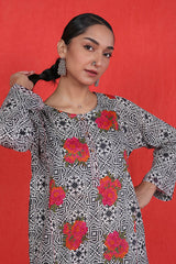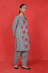 Printed A-line panelled kurta with button details on placket, paired with classic fit printed shalwar.