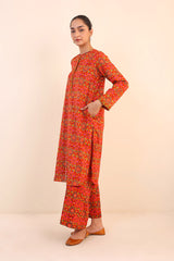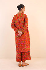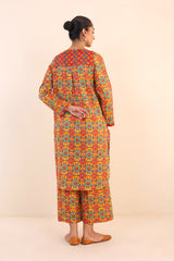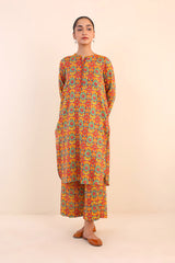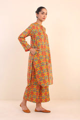 Printed kurta with buttons on placket and side pockets. Paired with printed loose fit culottes.