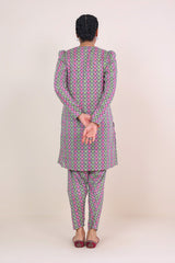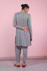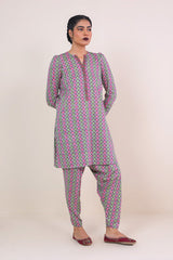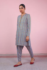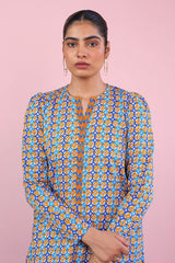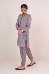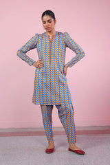 Printed shirt with puff sleeves, paired with printed pegged shalwar.