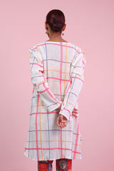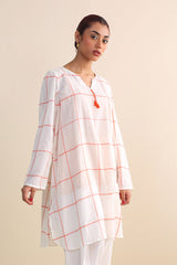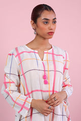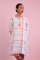 Crinkled Voile, yarn dyed kurta with tassels on neckline.