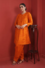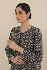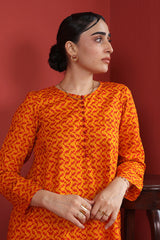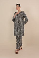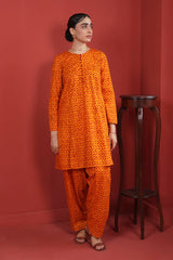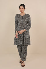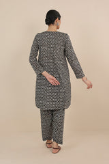 Printed A-line shirt with button loops onneckline, paired with classic fit printed salwar.