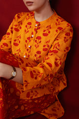 Monochromatic prnted shirt with buttons on placket and paired with contrasting classic fit shalwar.