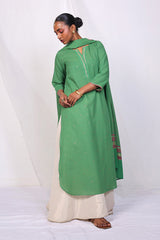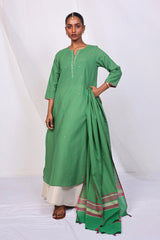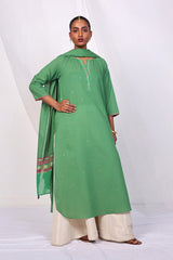 Checkered kurta with embroidery and bead details, paired with yarn dyed dupatta.