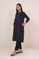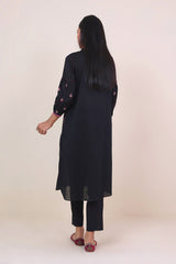 Embroidered kurta with cinched sleeves, side pockets and speckled with mukaish details.