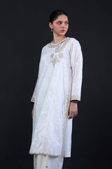 All over Jaal embroidered kurta with golden zarii applique details on neckline, sleeves and sides.