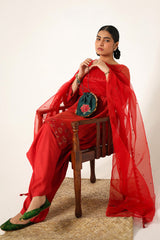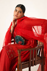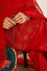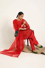 Adorned with delicate beadwork, a classic straight-fit paneled kurta features a round neckline. The sleeve hems and shirt borders are highlighted with finely woven golden motifs, while the panels are accentuated with intricate trim. Paired with a solid-hued classic fit shalwar, the look is completed with a dupatta delicately adorned with scattered beadwork floral motifs, finished with a refined trim and tassels at the corners. Comes with an inner for added comfort.