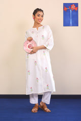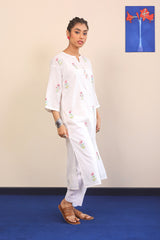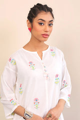 Hand embroidered micro check boxy kurta wth mirror work and tassel details.