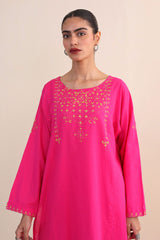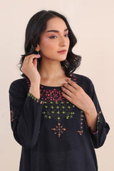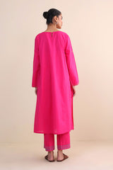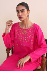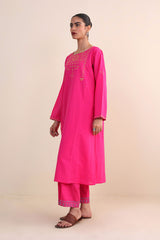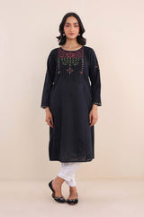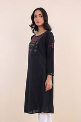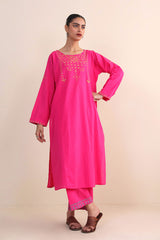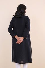 Hand Embroidered, cotton karandi kurta, with details on sleeves.