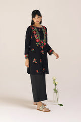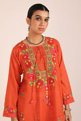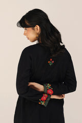 A handcrafted Ralli applique shirt with a keyhole neckline and dori tassel details. Finished with applique work and embroidered booti motifs on the sleeves. Can be paired with any Generation lowers for a complete cohesive look..