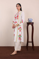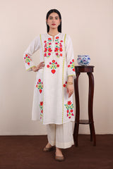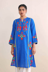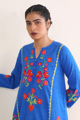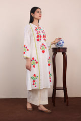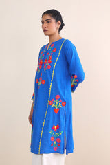 Ralli embroidered applique A-line kurta with buttons on neckline.