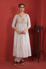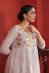 Embrace the art of Ralli on our flared dress with botanical applique details on bodice and back with gathers on waist.