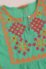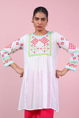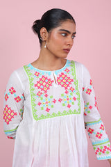 Hand embroidered flared kurti with sheeshawork details and gathers on bodice.