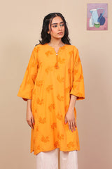 Embroidered crinkled lawn kurta with tassel details on neckline.