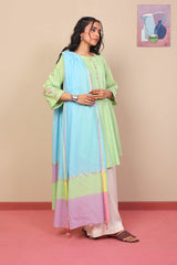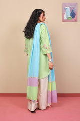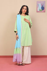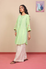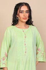 Embroidered tunic with stitched pleat details, paired with yarn dyed dupatta.