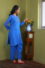 Mirror work embroidered, crinkle voile kurta,paired with classic fit shalwar.