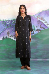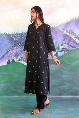 Straight fit jacquard motifs shirt adorned with hand made heart tassels on neckline.