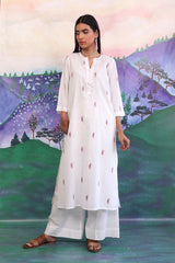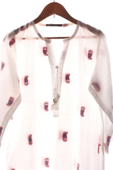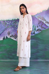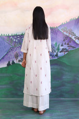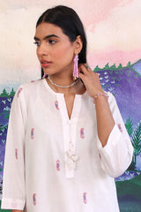 Straight fit jacquard motifs shirt adorned with hand made heart tassels on neckline.