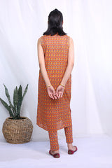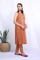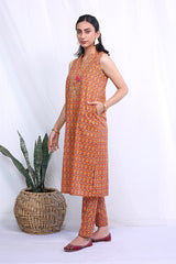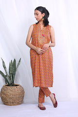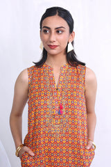 Printed shirt with aari embroidery details on neckline & tassel details. Paired with slim fit printed pants.-Model is wearing size 8 and height is 5' 7''
