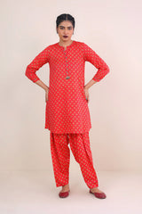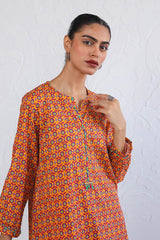 Printed kurta with cuff sleeves, paired with printed classic fit shalwar.
