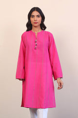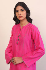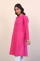 A straight embroidered shirt with a minimal look, with tassel and metallic embellishments on placket.