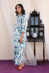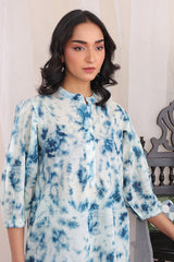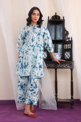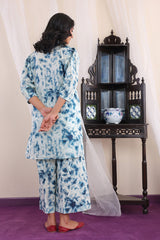 Tie & Dye print inspired kurta with volmnous sleeves and a hidden placket, paired with matching culottes.