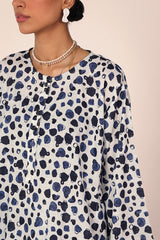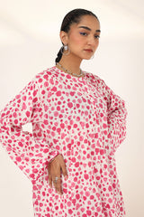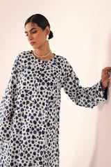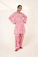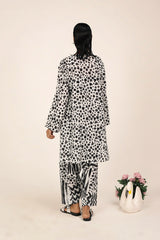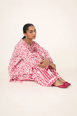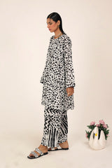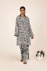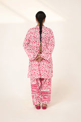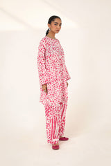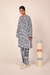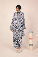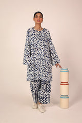An easy-fit printed kurta featuring a round neckline, and a buttoned front placket. The sleeve hems are adorned with delicate dori piping, adding a subtle touch of detail. Paired with a matching printed classic-fit shalwar, complete with stitching details on the ankle hemline, this set offers a perfect blend of artistic charm and everyday ease.