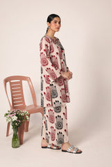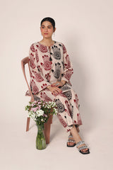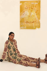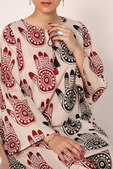 A bold mehndi-hued classic printed kurta featuring a round neckline adorned with tassel detailing. Paired with matching printed classic culottes for a cohesive look.