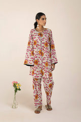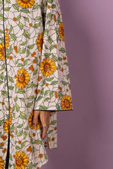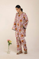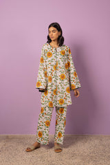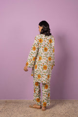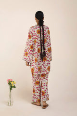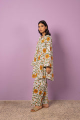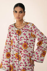 An easy-fit printed kurta with a round neckline, adorned with dori piping detail along the neckline and front slit. The intricate print resembles delicate stained glass artistry. Sleeve hems are also enhanced with dori piping. Paired with matching printed straight-fit trousers for a refined, coordinated look.