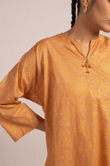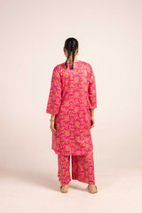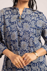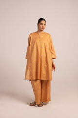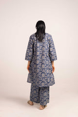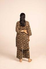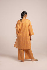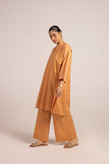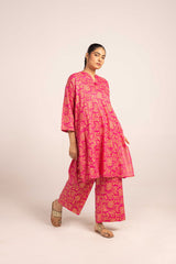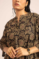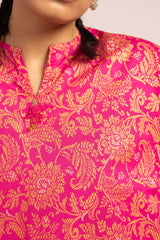A jacquard-inspired printed paneled kurta featuring a round neckline with a V-slit, adorned with a delicate tassel detail. The authentic jacquard patterns add timeless charm, beautifully paired with matching printed culottes for a sophisticated look.