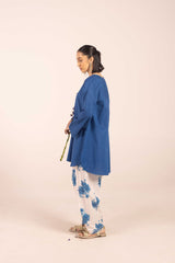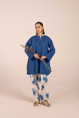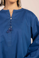 A relaxed-fit solid kurta features a round neckline with a V-slit adorned with tassel detailing. Paired with vibrant, blooming floral-printed khula poncha shalwar , itÕs finished with stitching details at the ankle hemline for a contemporary look.