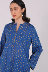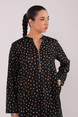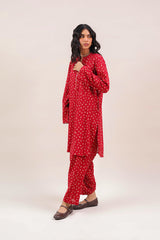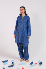 A printed shirt with a round neckline and V-slit, adorned with button detailing along the front slit. Paired with a matching printed classic-fit shalwar for a coordinated and effortless look.