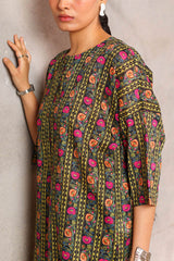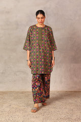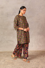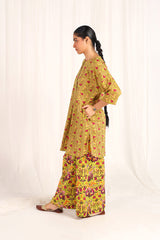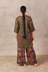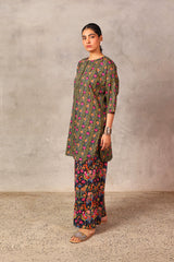 An classic-fit floral printed kurta featuring a round neckline and a relaxed drop-shoulder design for added comfort. ItÕs paired with contrasting, lively printed culottes that add a playful touch to the look.