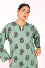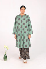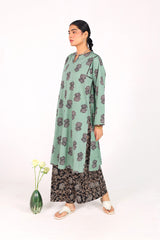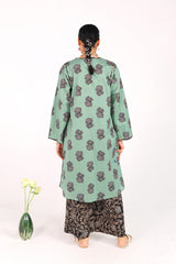 A classic-fit kurta adorned with delicate gulab prints, featuring a round neckline with a V-slit. The shoulders and side slits are highlighted with vibrant floral printed borders for added charm. Paired with contrast printed culottes to complete the look with a playful yet elegant flair.