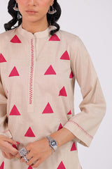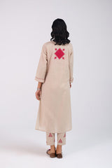 A classic straight-fit, hand block-printed shirt featuring delicate stitching details on the placket, echoed gracefully on the turn-up sleeve hems. Paired with matching printed straight-fit trousers for a cohesive look.