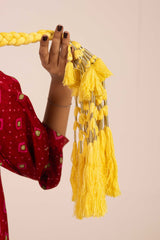 A paranda featuring beautifully braided strands, adorned with intricate and subtle zari work. Its strong, elegant weave adds a touch of tradition, grace, and timeless feminine charm to any look.