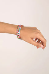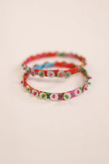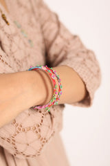A vibrant set of multicolored boho bangles, enhanced with sequin and bead detailing. A perfect blend of traditional charm and contemporary flair, adding a playful touch to any look.