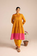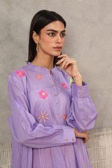 A classic-fit tiered frock with a band neckline and buttoned placket. Adorned with vibrant floral embroidery on bodice. Finished with a cuffed sleeves for a tailored touch. The gathered tiers add a playful flare. Pairs effortlessly with any Generation fit.