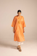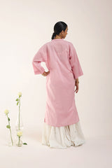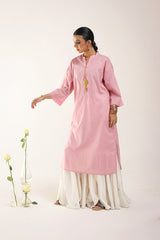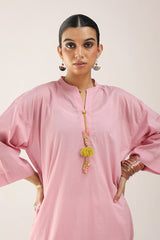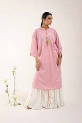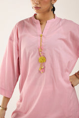 A solid-hued, dotted-textured kurta featuring a band neckline and a V-style neckline The neckline is adorned with delicate, colorful tassel details. Designed with drop shoulders for a relaxed fit. Can be paired with any Generation bottoms.